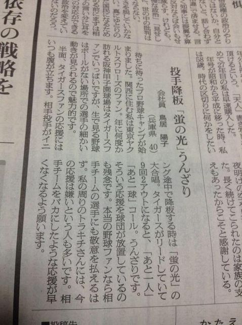 新聞「阪神ファンは●ソ、マナーゼロの無神経」