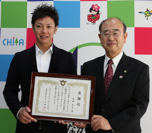 浅尾は本年度、ふるさと納税として知多市に250万円を寄付。