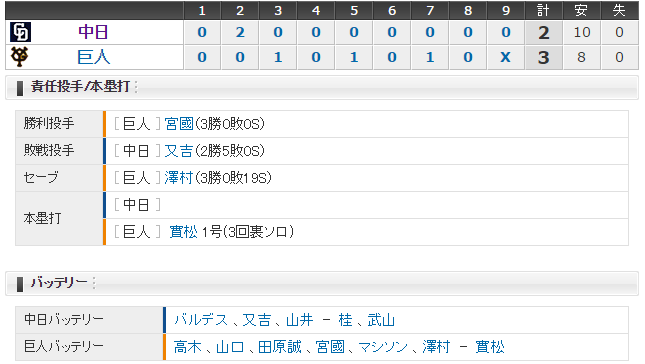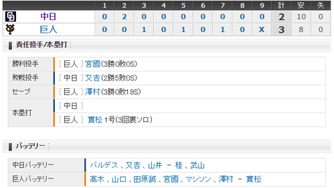【試合結果】 6/29 中日 2 - 3 巨人 又吉痛恨の押し出し・・連勝ならず