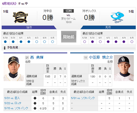 【実況・雑談用】 6/7 中日 vs オリックス(京セラドーム)18:00開始
