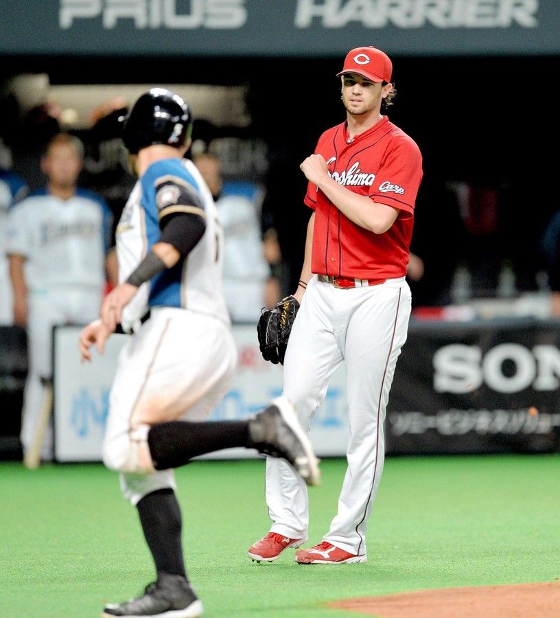 狂った指先を最後まで修正できなかった。三者凡退はなし。毎回、走者を背負う苦しい投球が続いた。6回7安打3失点。数字以上に伴わなかった内容に、広島のクリス・ジョンソン投手は表情をくもらせた。1点の援護をもらった直後の四回に崩れた。1死一、三塁で大野にスクイズを決められ同点。陽岱鋼の右前適時打で逆転を許すと、なおも1死満塁で西川に押し出し四球を与えた。「あの回だけだった」。この1イニングで3点を失い、制球力が自慢の左腕はマウンド上で天を仰いだ。