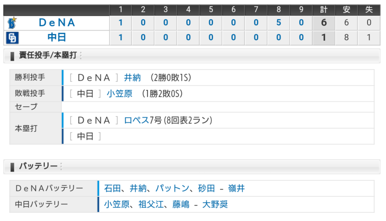 【試合結果】 4/28 中日 1-6 DeNA 小笠原8回崩れ3連敗..