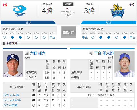 【ドラゴンズ実況】 5/29 中日 vs DeNA(ナゴヤドーム)18:00開始