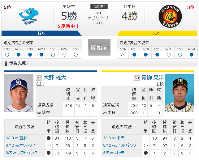 【ドラゴンズ実況】 6/29 中日 vs 阪神(ナゴヤドーム)14:00開始