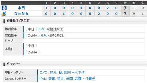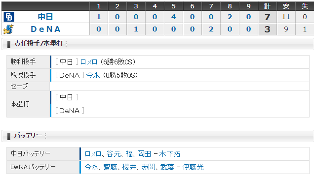 【試合結果】 7/18 中日 7-3 DeNA 8連勝!!!アルモンテ4安打1打点!打線は今永から5得点!ロメロは6勝目!