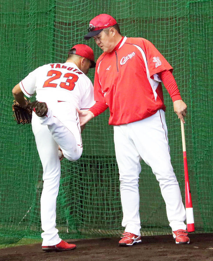 広島が2日、佐々岡真司新監督(52)体制で初のキャンプを宮崎・日南市で開始した。投手陣がブルペンに集まると、今季まで1軍投手コーチだった指揮官も駆けつけて、赤いノックバットを片手に熱視線を送る。すると、薮田和樹投手(27)と、ケムナ誠投手(24)がユニークな投球練習を始めた。同じマウンドで薮田が20球投げればケムナは休憩。ケムナが投球すれば薮田が休憩。それを5セット繰り返した。