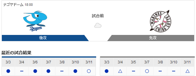 【実況・雑談】 3/13 オープン戦 中日vsロッテ(ナゴヤドーム)18:00開始