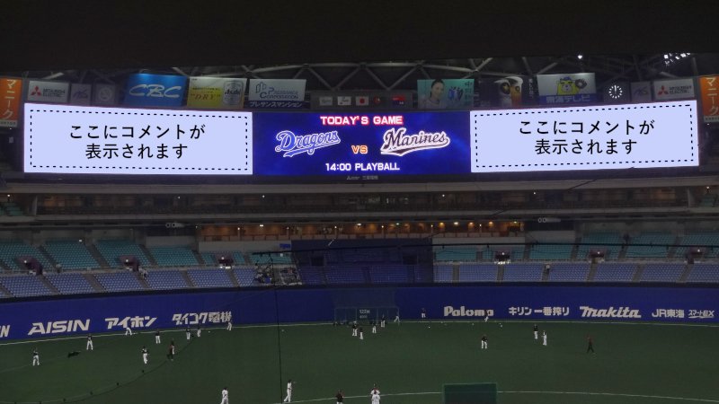 3月13日(金)から15日(日)までナゴヤドームで開催される中日ドラゴンズ対千葉ロッテマリーンズの試合にてドラゴンズファンから熱い応援コメントを大募集です 応援コメントは106ビジョン、ビジョン広告、バックネット広告の3ヶ所を使って放映します。