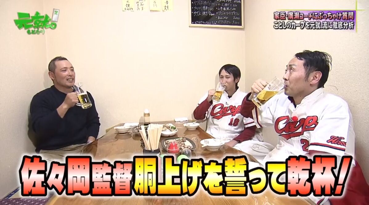 佐々岡監督を高ヘッドと朝山コーチが挟んでやってく