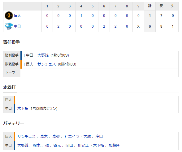 【試合結果】 3/16 オープン戦 中日 6-1 巨人 ドラゴンズ快勝!木下拓バンテリン初HR!大野は5回1失点の好投