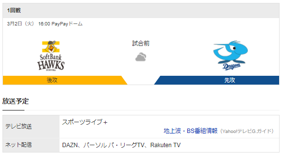 【実況・雑談】 3/7 オープン戦 中日vs楽天(バンテリン)14:00開始