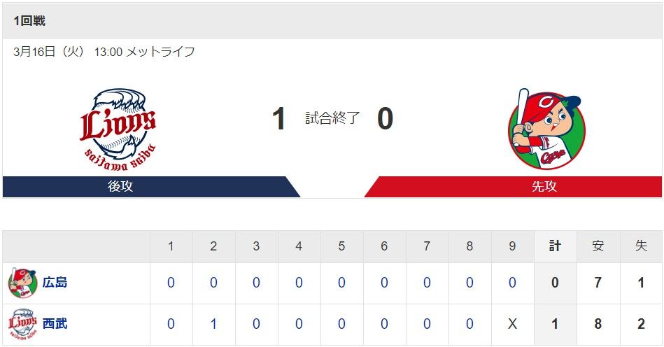 499: 西1-0広(9回表) 21/03/16(火)15:50:14 ID:Fx.v7.L8
