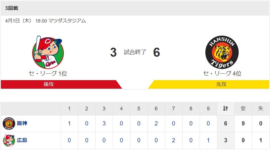 1035: 広3-6神(9回裏) 21/04/01(木)21:14:43 ID:C