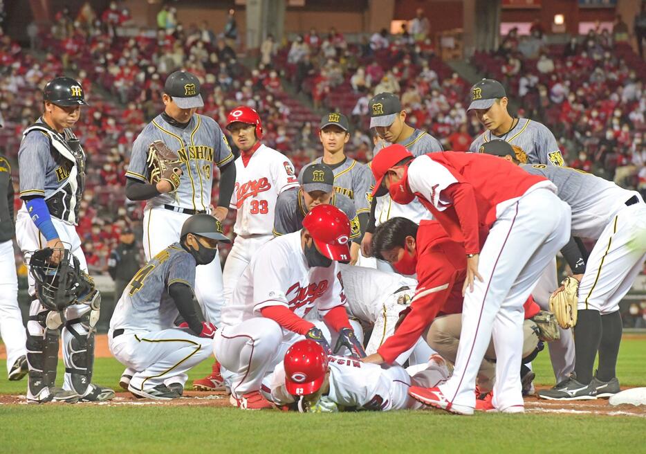交錯で負傷交代の広島・西川 DeNA戦は2日に様子を見て判断