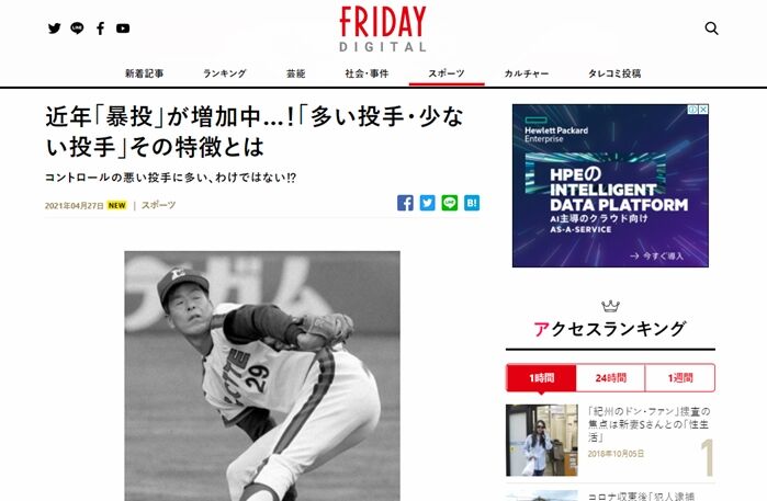 FRIDAYで「暴投」について書いています