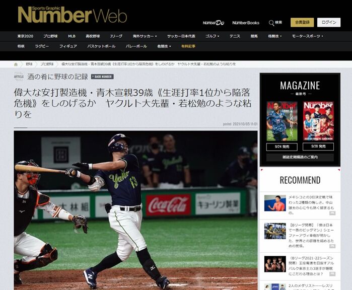 Number Webで生涯打率をめぐる青木宣親について書いています