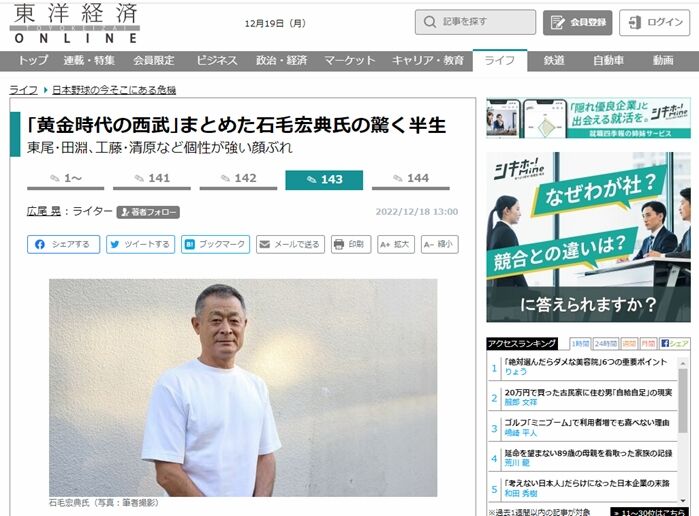 西武ライオンズに入団して引退するまで。「東洋経済」なのでマネジメントを中心に聞いた。丁寧な話しぶりだった。