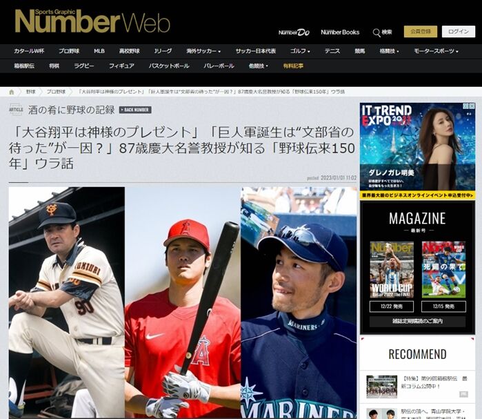 Number Webで池井優名誉教授の「野球150年講演」を紹介しています